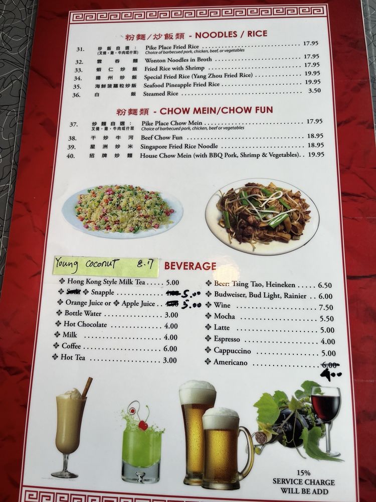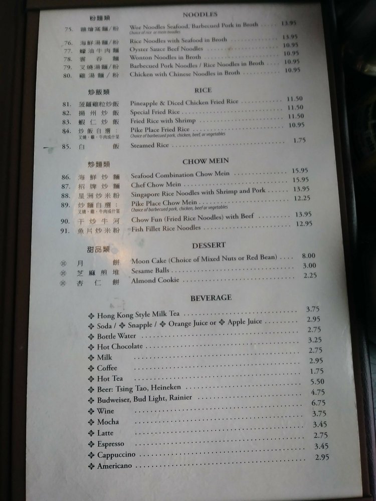 Pike Place Chinese Cuisine Menu (2025 Update)